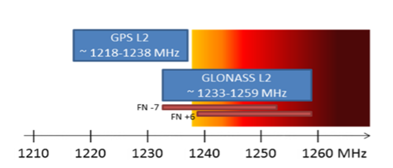 GLONASS L2比GPS L2更易受干扰,尤其是1240MHz 以上,因为与业余无线电等业务共频;